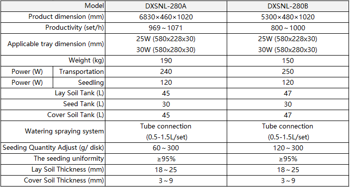 DXSNL-280 Series Rice Seedling Nursery Line can realize automatic earth-laying, watering, seed sowing and earth-covering process at one time.